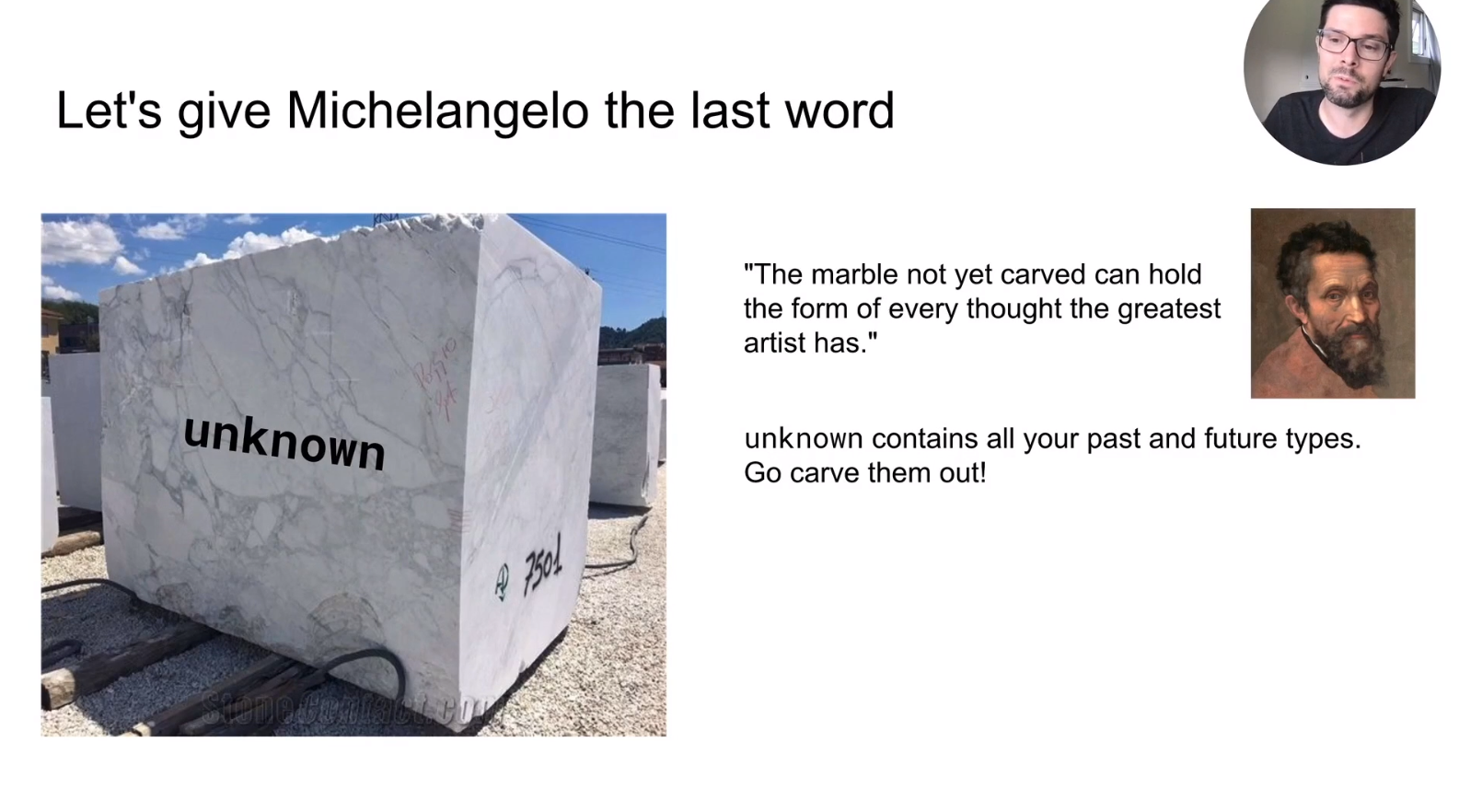 He was using the analogy of Michelangelo who carved the David statue out of marble block