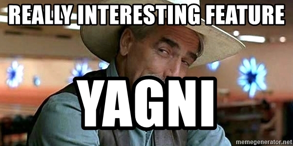 While all kinds of acronyms are usually very popular among software developers, this is one that way too few know about: YAGNI - You Aren't Gonna Need It!.